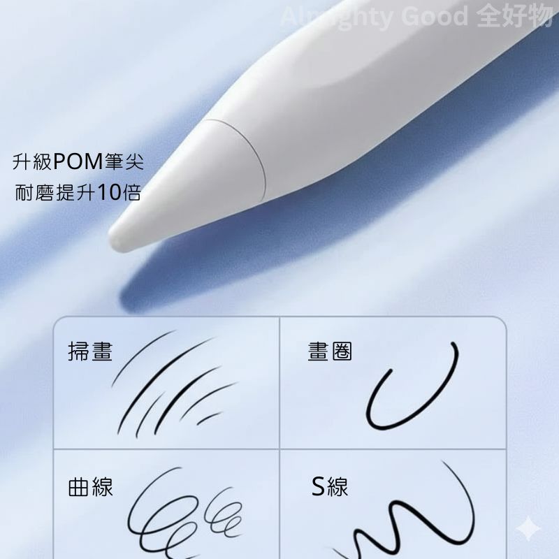 筆尖採用雙用結構(含耐用POM材質),無論搭配手機或平板,都能流暢點選、穩定書寫。